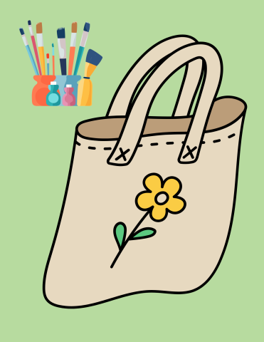 After you browse or shop at the Friends Pop-Up Book Sale at Parks & Rec, stop by the Kitchen to paint a new canvas tote bag!